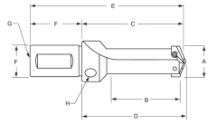 | Part No | Insert Series | Drill Insert Range "A" | Max Drill Depth "B" | Flute Lgh "C" | Ref Lgh "D" | Overall "E" | Shank Dia "F" | Shank Lgh "F" | Pipe Tap Rear "G" | Price Per | Price | Quantity |